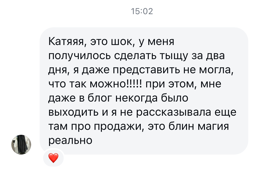 "я даже представить не могла, что так можно и при этом, мне некогда было выходить в блог, я даже не рассказывала еще там про продажи, это, блин, магия"